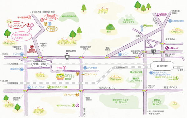 JR長野新幹線「軽井沢駅」北口から、タクシー・お車(約5分)