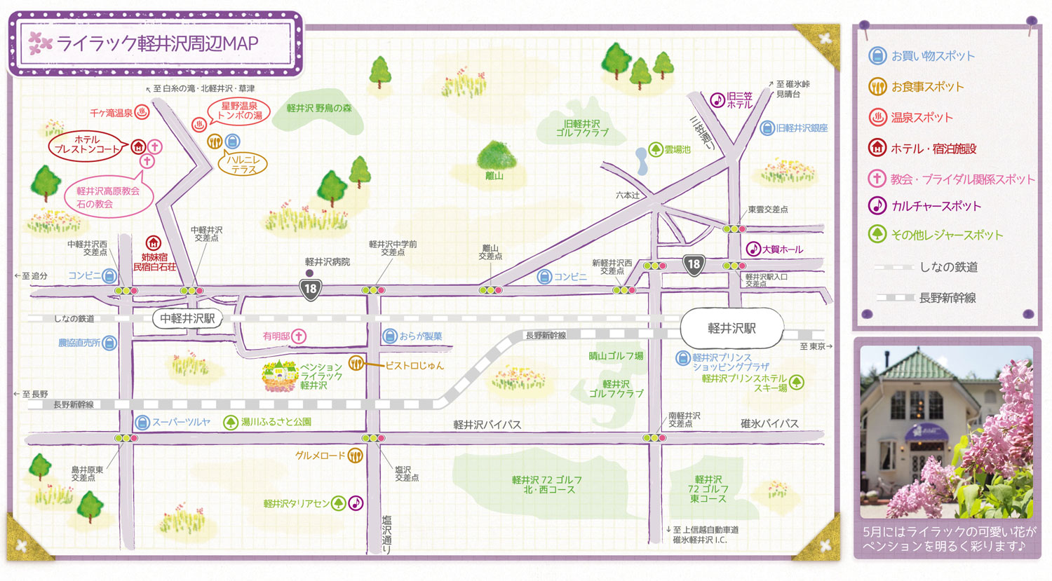 軽井沢の中心地に位置するペンション「ライラック軽井沢」のまわりには、
