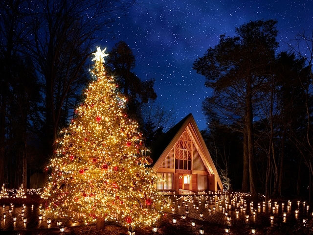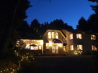 夜はライトアップしています。庭から夜空を見上げると満天の星空!