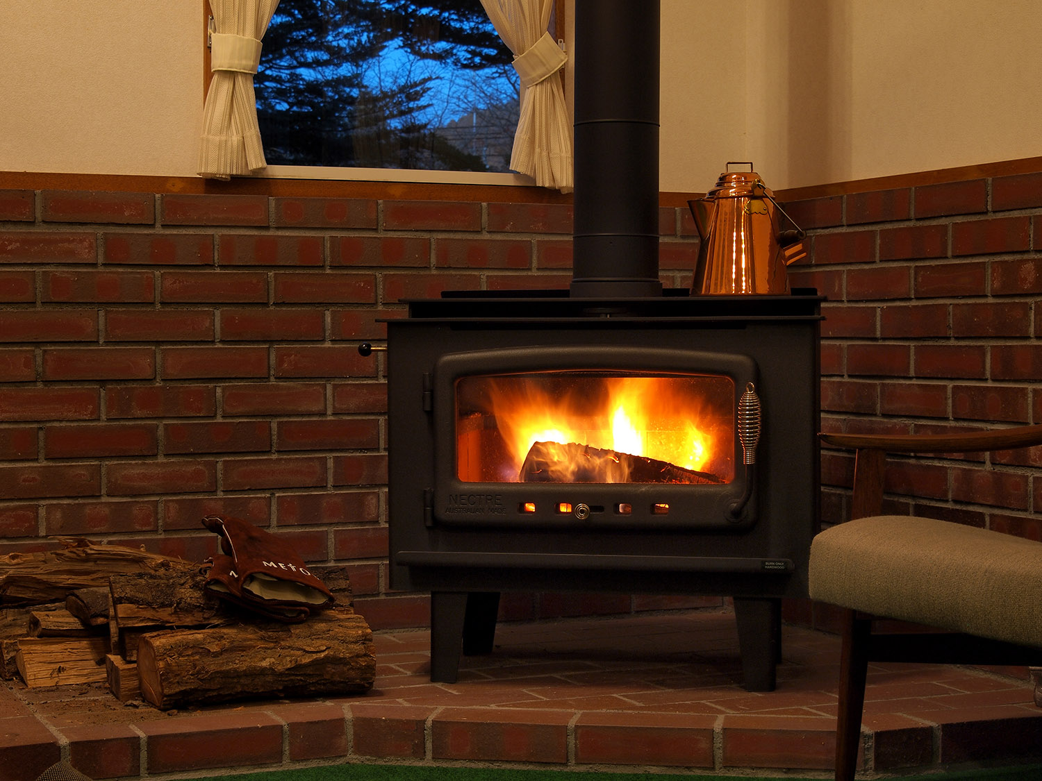 冬はパチパチとはぜる薪ストーブで身体の芯から暖まってください。
