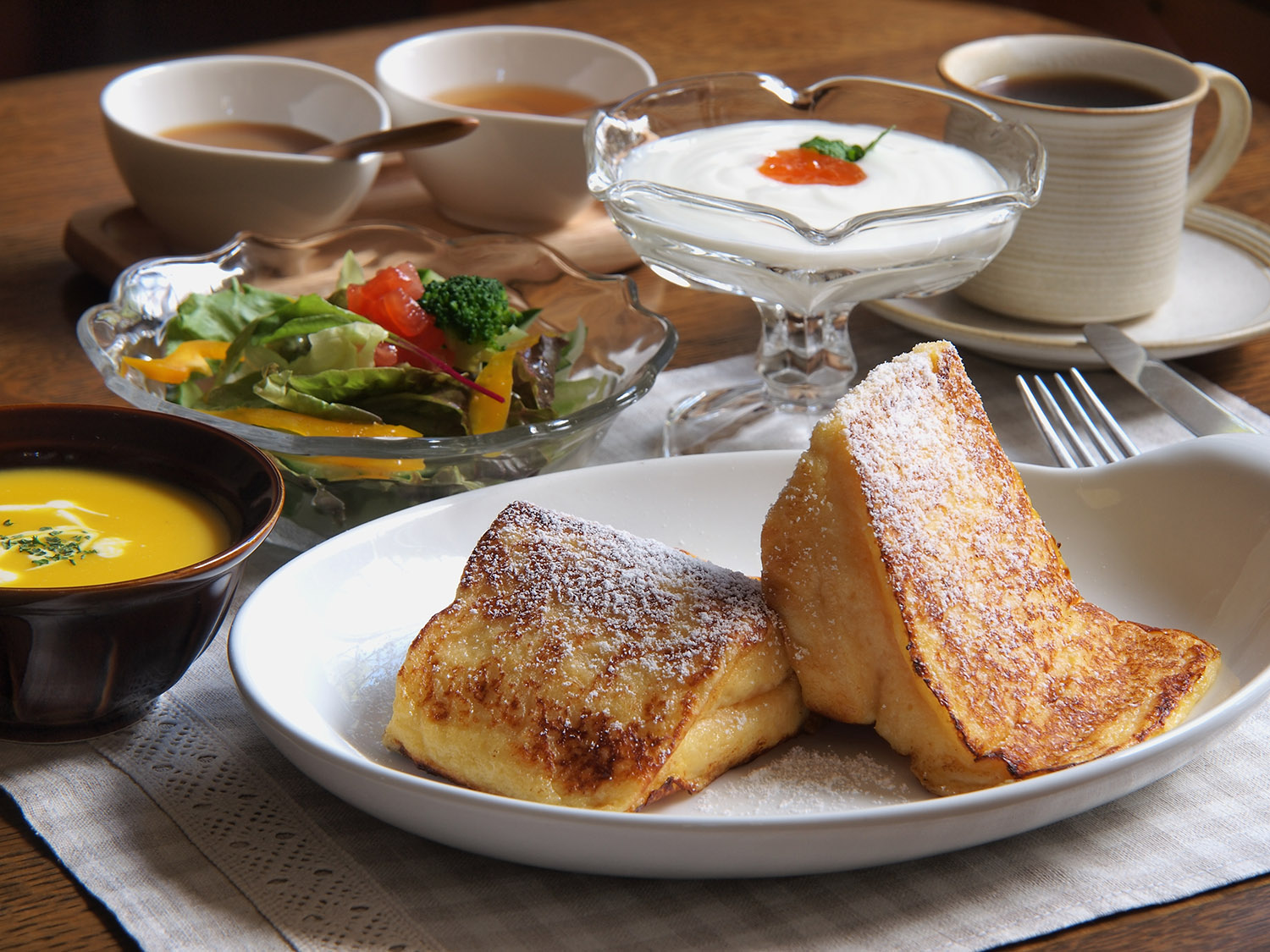 石窯で焼き上げる旬野菜の薄焼きピッツァと、ふわっふわのフレンチトーストで幸せな朝食を♪
