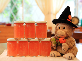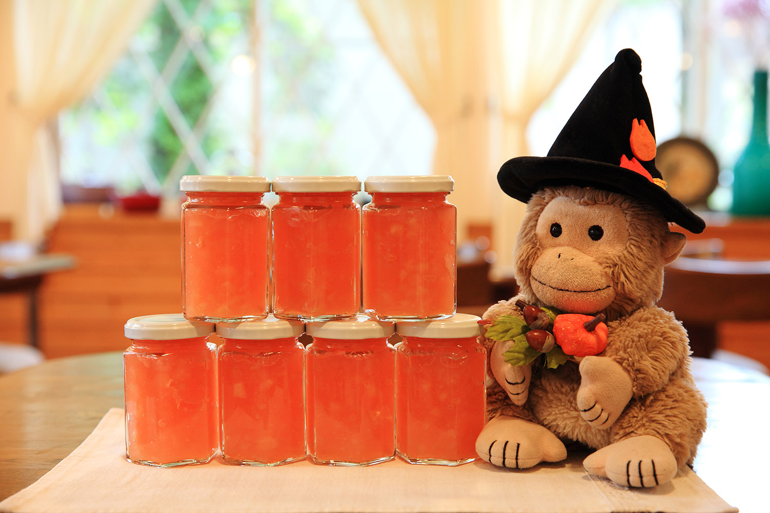 季節の果物や野菜で自家製ジャムを作り、デザートのヨーグルトにトッピングしています。