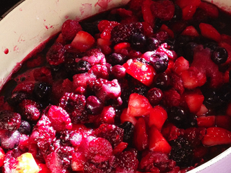 フレンチトーストにトッピングするミックスベリーソースも自家製です♪