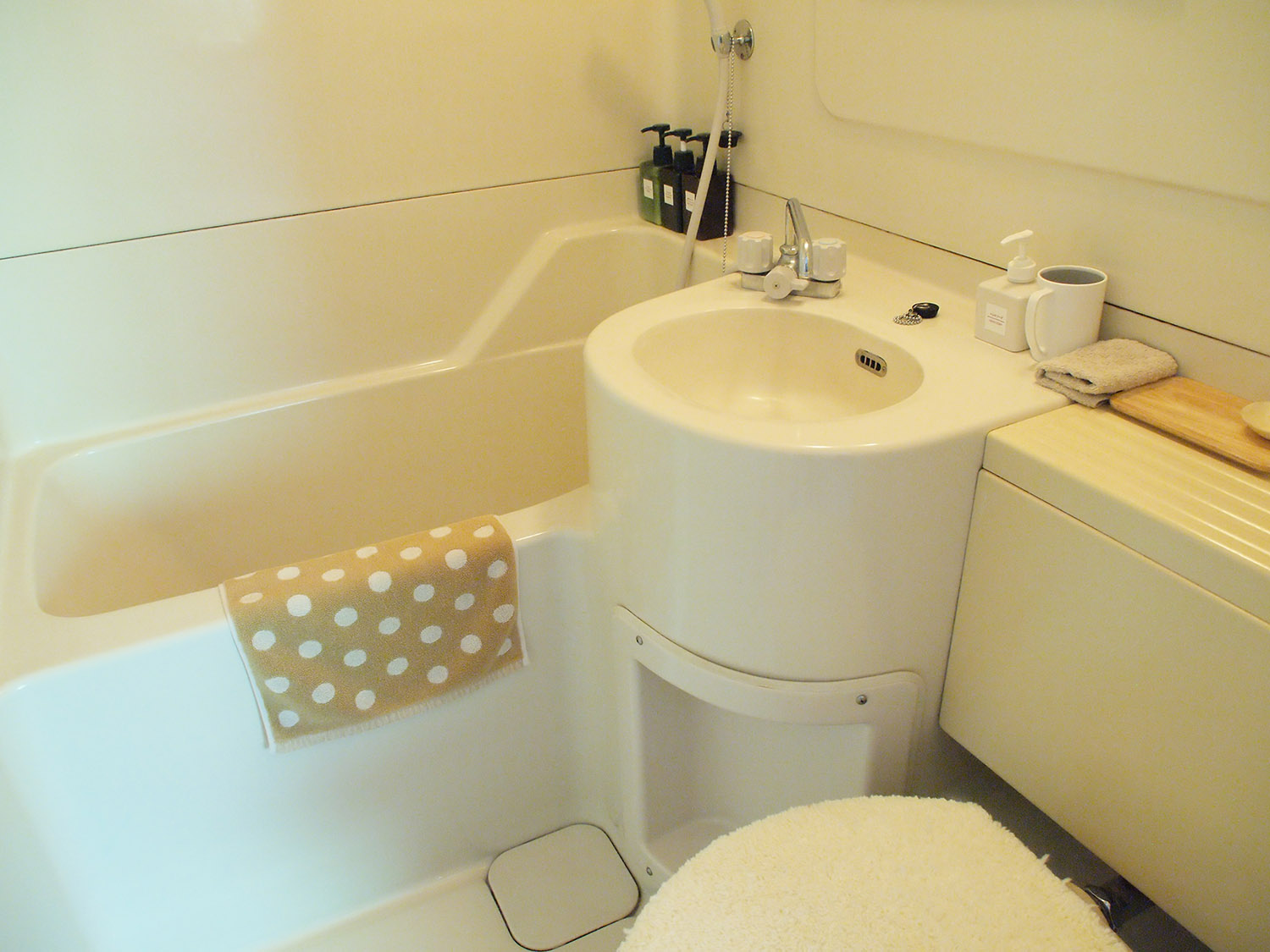 シンプルなユニットバス。プライバシーを守り、いつでもご自由にお使い頂けます。