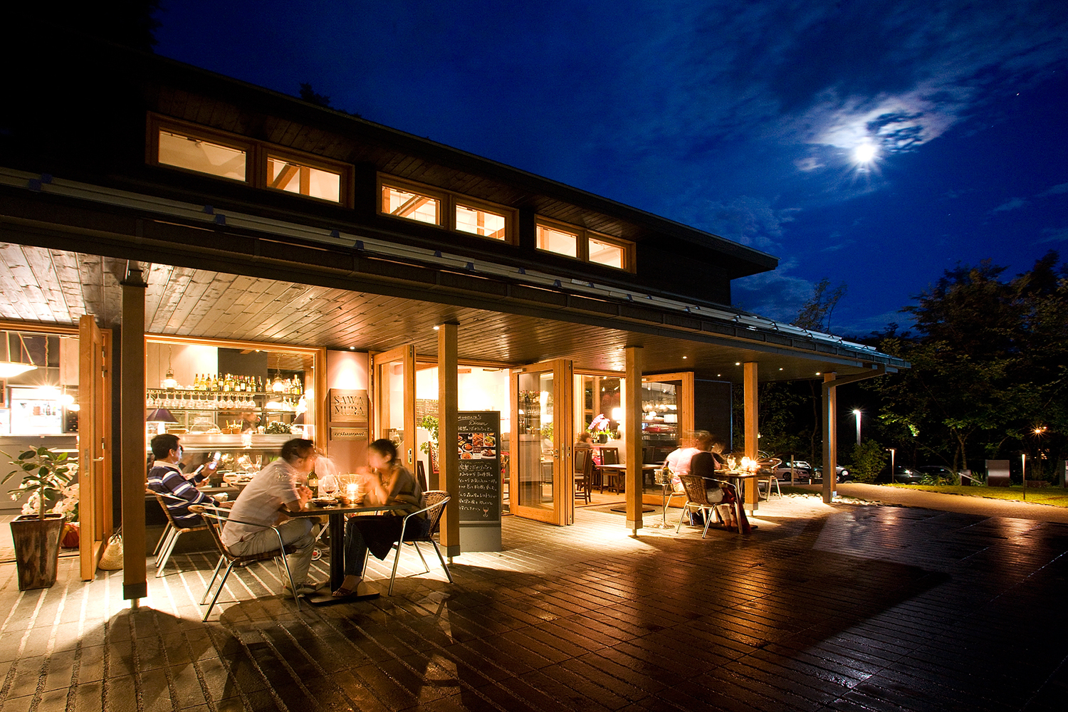 車で約5分のハルニレテラス。徒歩圏には、掛け流し温泉「トンボの湯」も!