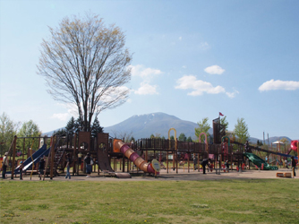 お散歩圏内にある「湯川ふるさと公園」は広々として遊具も充実!お子様連れに人気です。